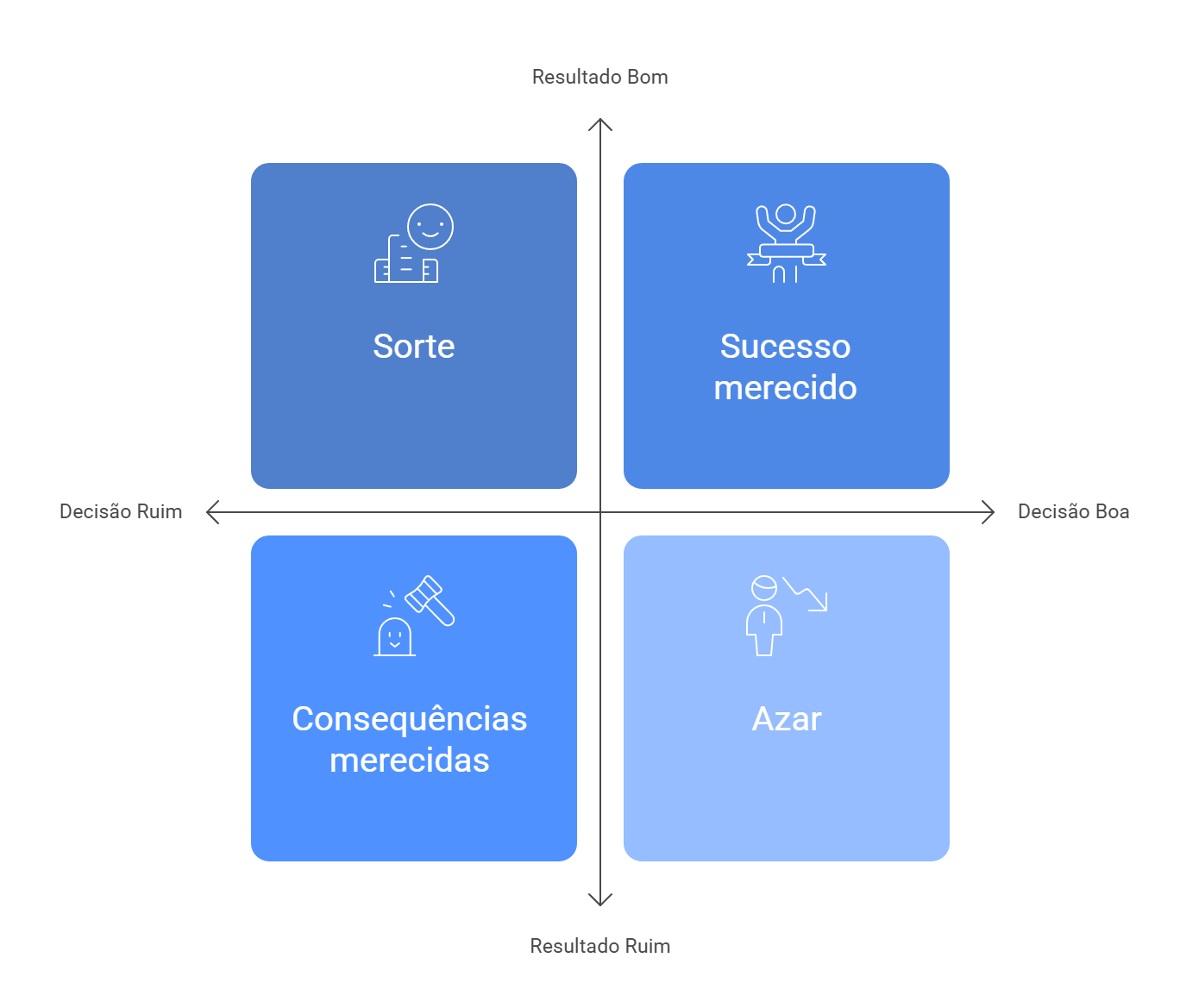 Essa abordagem separa uma boa decisão de um bom resultado. Decisões inteligentes podem falhar por puro azar, e decisões estúpidas podem dar certo por sorte. Focar em ter um processo sólido é o que garante vitórias no longo prazo.