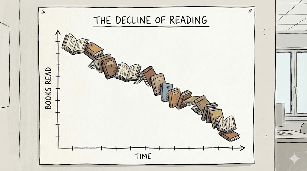 Vemos metas de ano novo que gritam “ler 50 livros este ano”, influencers exibindo pilhas de livros lidos no mês e uma corrida desenfreada para consumir podcasts em velocidade 2x.